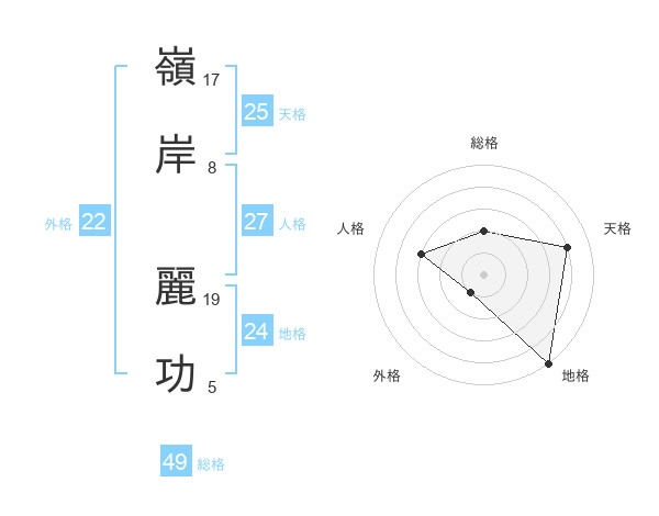 嶺岸 麗功さんの総格は49画の2点!