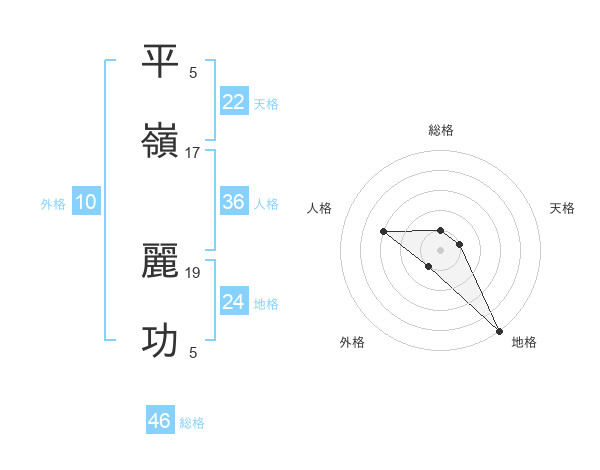 平嶺 麗功さんを姓名の画数から五運を鑑定