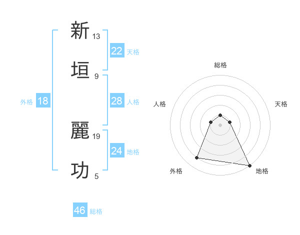 新垣 麗功さんを姓名の画数から五運を鑑定