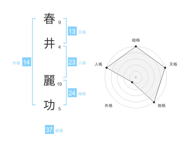 春井 麗功さんの総格は37画の5点!