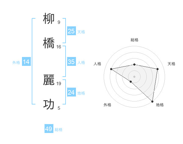 柳橋 麗功さんの総格は49画の2点!