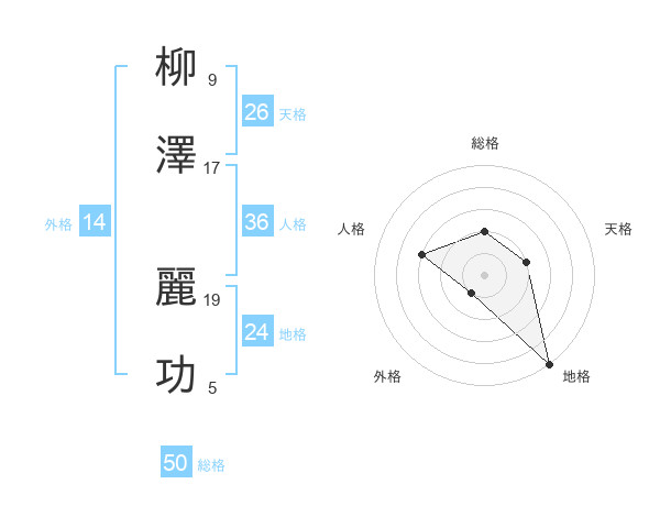 柳澤 麗功さんの総格は50画の2点!