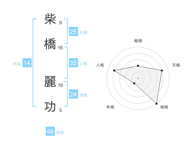 柴橋 麗功さんを姓名の画数から五運を鑑定