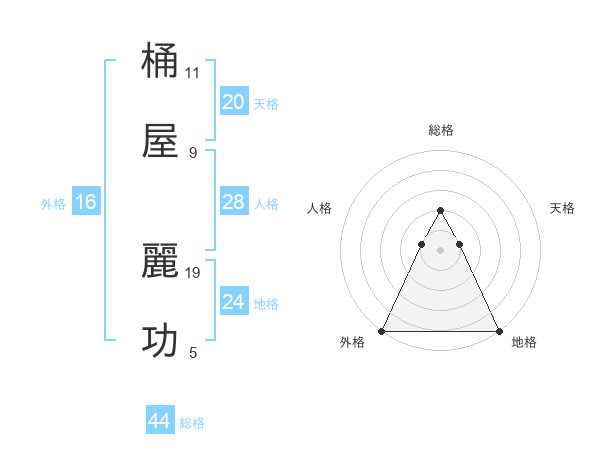 桶屋 麗功さんを姓名の画数から五運を鑑定