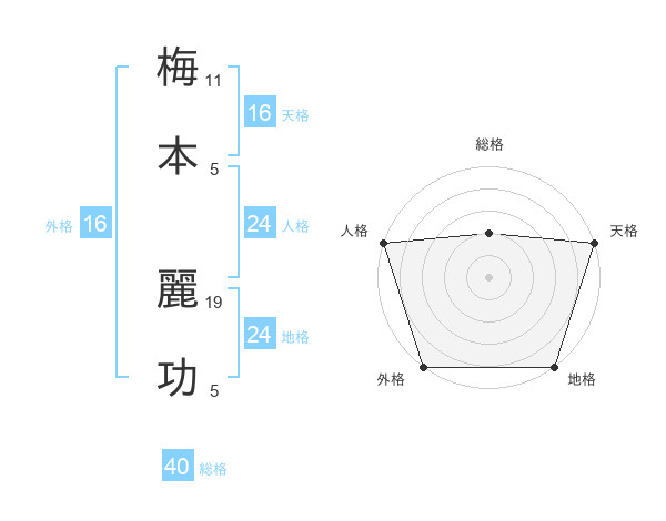 梅本 麗功さんの地格は24画の5点!