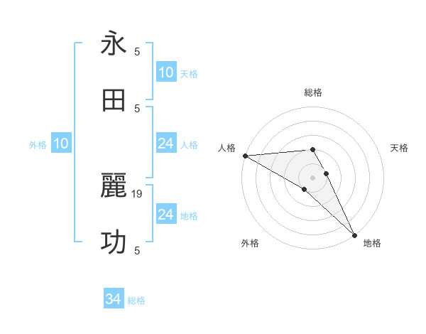 永田 麗功さんの総格は34画の2点!