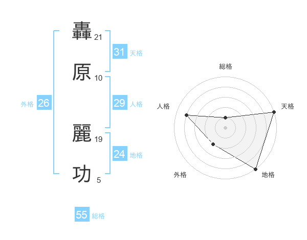 轟原 麗功さんを姓名の画数から五運を鑑定