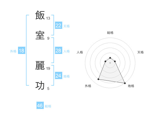 飯室 麗功さんの総格は46画の1点!