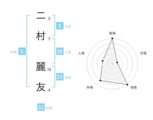 二村 麗友さんの総格は32画の5点!