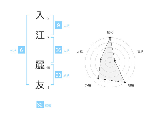 入江 麗友さんの総格は32画の5点!