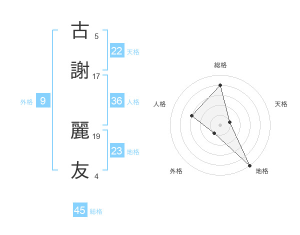 古謝 麗友さんの総格は45画の4点!