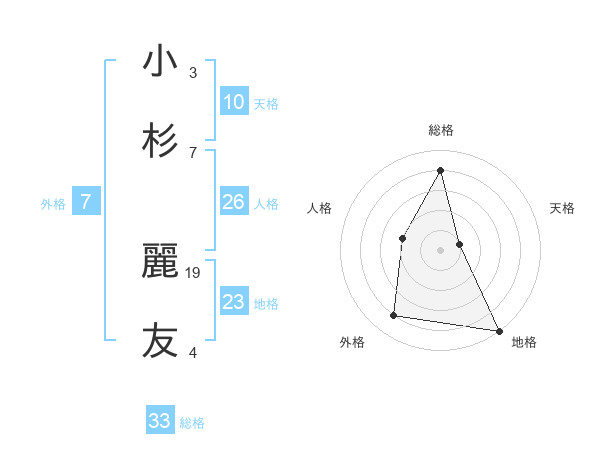 小杉 麗友さんの総格は33画の4点!