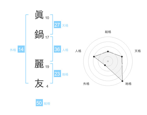 眞鍋 麗友さんを姓名の画数から五運を鑑定