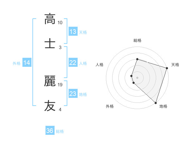 高士 麗友さんの天格は13画の5点!