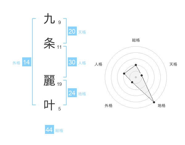 九条 麗叶さんの天格は20画の1点!