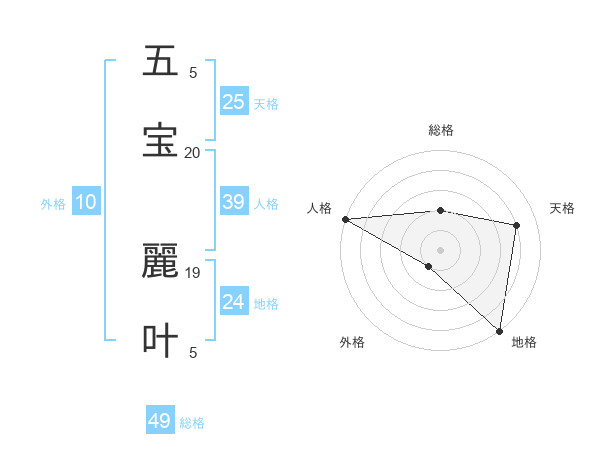 五宝 麗叶さんを姓名の画数から五運を鑑定