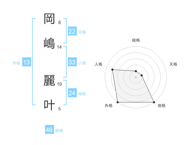 岡嶋 麗叶さんの外格は13画の5点!