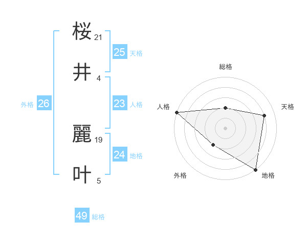桜井 麗叶さんを姓名の画数から五運を鑑定