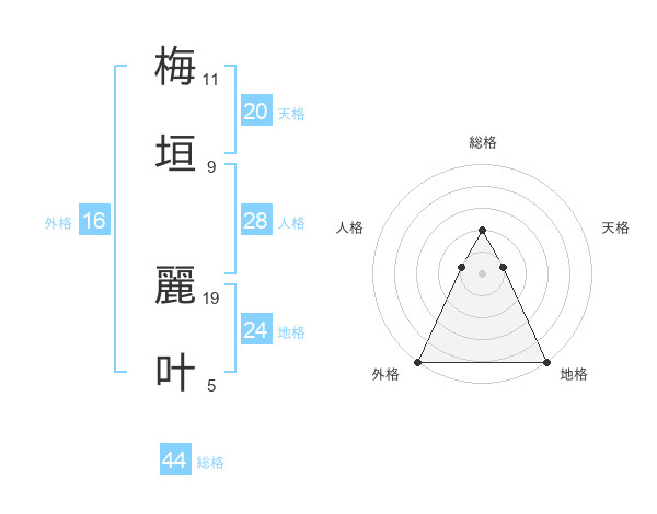 梅垣 麗叶さんの外格は16画の5点!