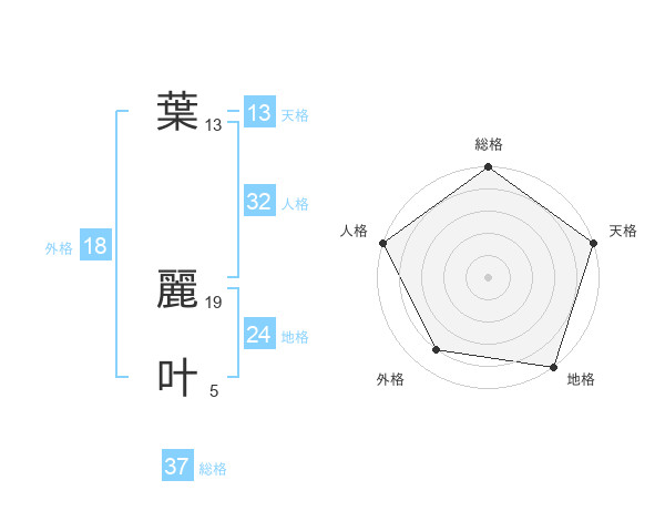 葉 麗叶さんの総格は37画の5点!