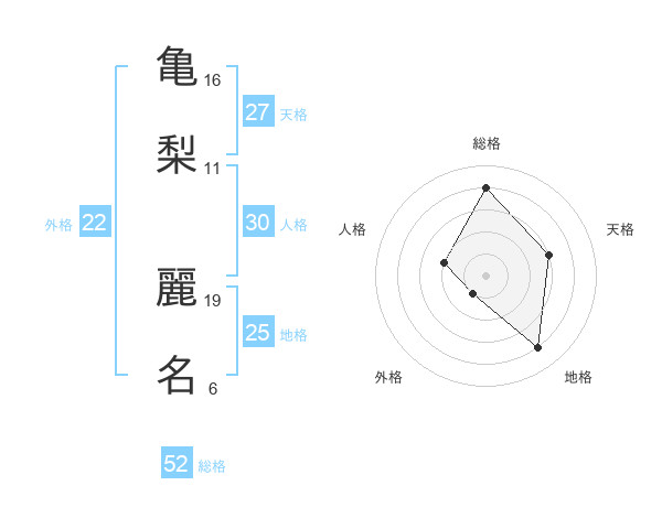 亀梨 麗名さんの総格は52画の4点!