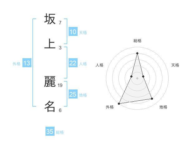 坂上 麗名さんを姓名の画数から五運を鑑定