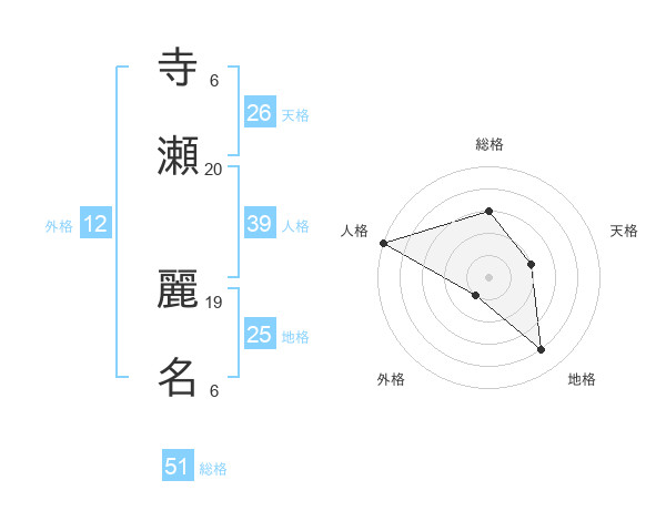 寺瀬 麗名さんの総格は51画の3点!