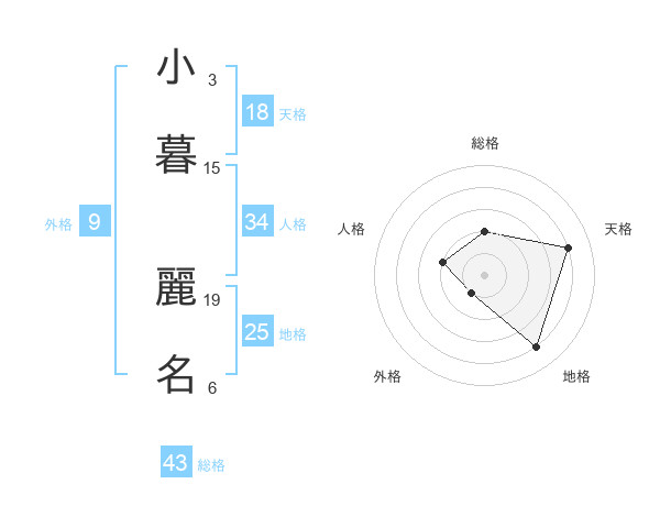 小暮 麗名さんの天格は18画の4点!