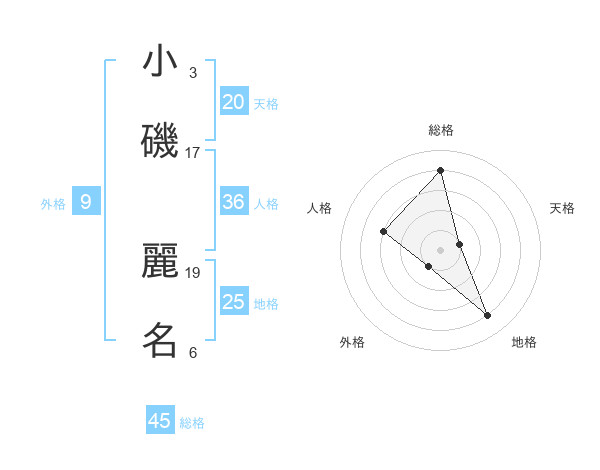 小磯 麗名さんの総格は45画の4点!