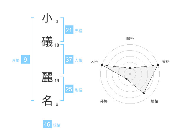 小礒 麗名さんの天格は21画の5点!
