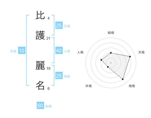 比護 麗名さんの天格は25画の4点!