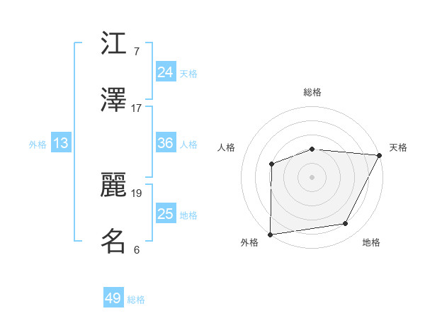 江澤 麗名さんの天格は24画の5点!