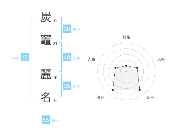 炭竈 麗名さんを姓名の画数から五運を鑑定