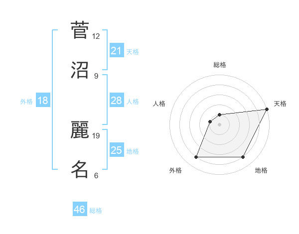 菅沼 麗名さんの天格は21画の5点!
