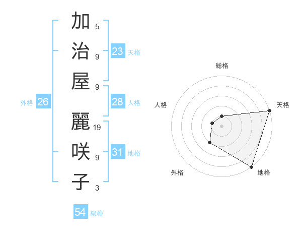 加治屋 麗咲子さんを姓名の画数から五運を鑑定