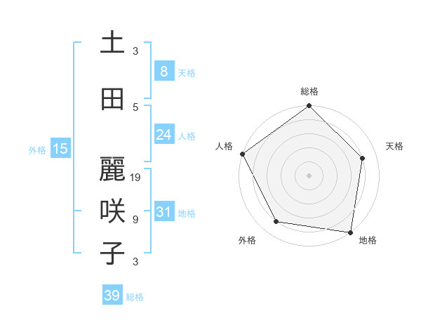 土田 麗咲子さんを姓名の画数から五運を鑑定