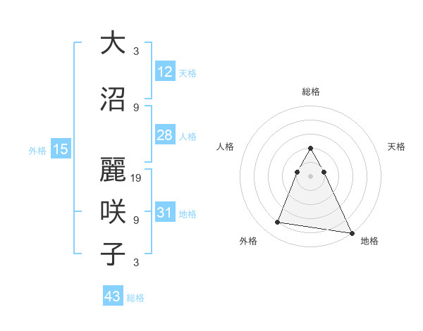 大沼 麗咲子さんの総格は43画の2点!
