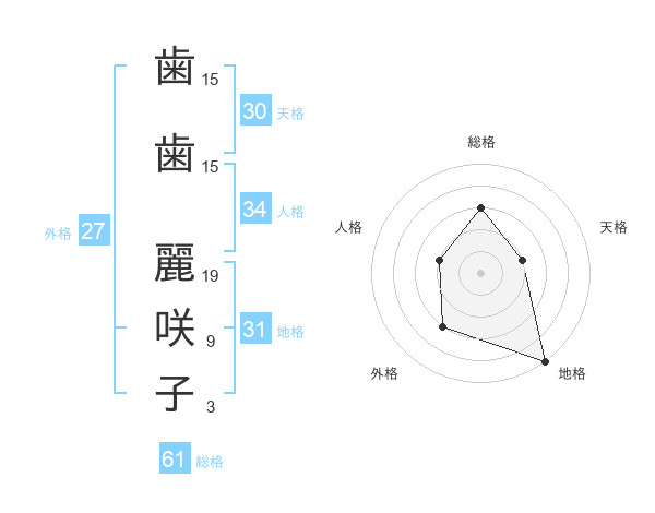 歯歯 麗咲子さんの天格は30画の2点!