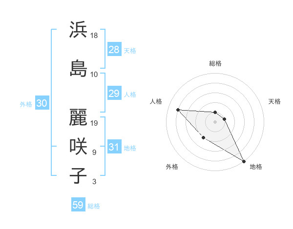 浜島 麗咲子さんを姓名の画数から五運を鑑定