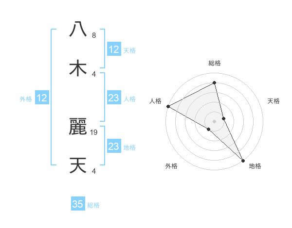 八木 麗天さんの総格は35画の4点!