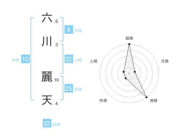 六川 麗天さんの総格は32画の5点!