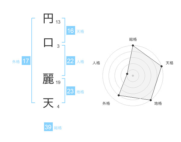 円口 麗天さんの総格は39画の5点!