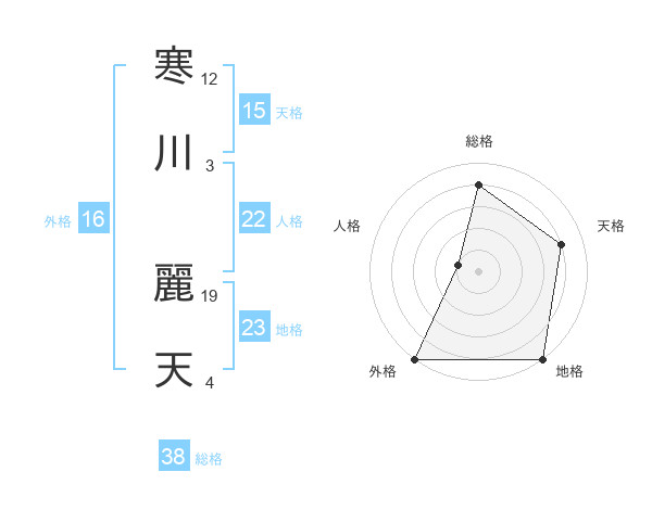 寒川 麗天さんの総格は38画の4点!