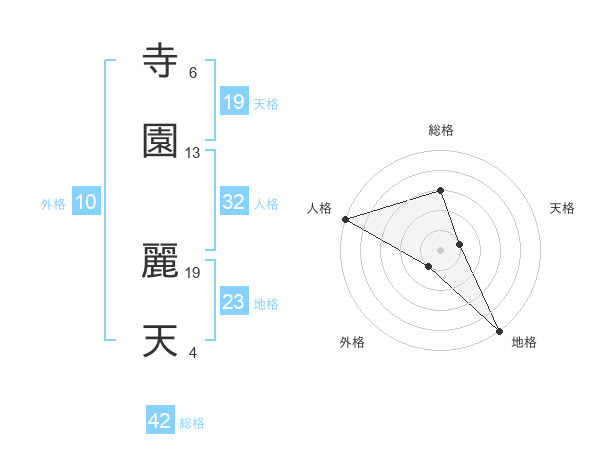 寺園 麗天さんの天格は19画の1点!