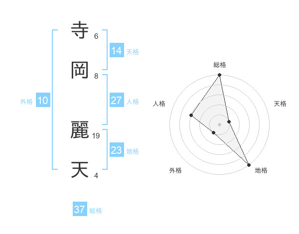 寺岡 麗天さんを姓名の画数から五運を鑑定
