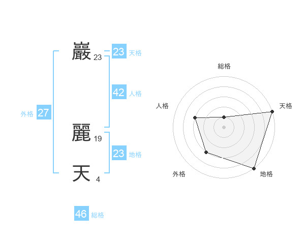 巖 麗天さんの天格は23画の5点!