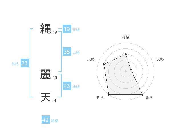 縄 麗天さんの外格は23画の5点!