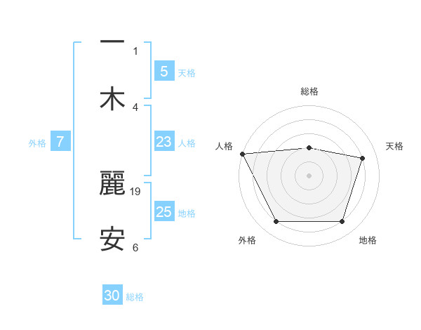 一木 麗安さんの人格は23画の5点!