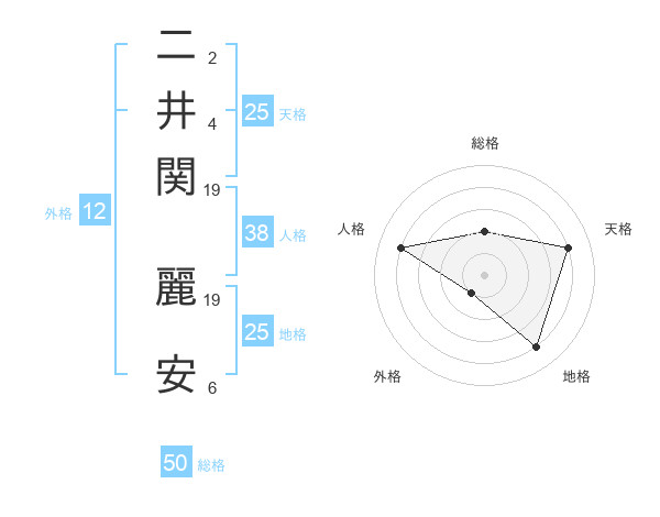 二井関 麗安さんの総格は50画の2点!