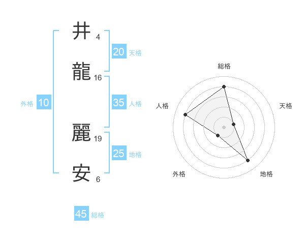 井龍 麗安さんの総格は45画の4点!